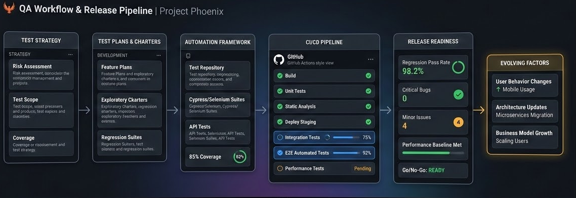 I’m a Software QA Engineer with 8+ years of experience ensuring high-quality releases across web and mobile applications. I specialize in building QA foundations from scratch, designing test strategies, and implementing scalable automation frameworks for startups and growth-stage teams. My focus is simple: ship fast, reduce risk, and protect user trust.